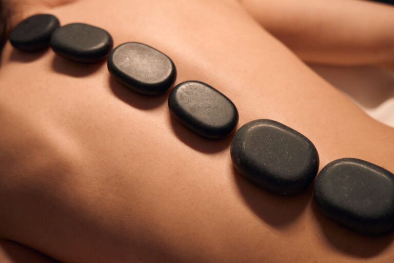 Sessão prolongada com pedras quentes, proporcionando relaxamento intenso, conforto muscular e sensação de leveza.