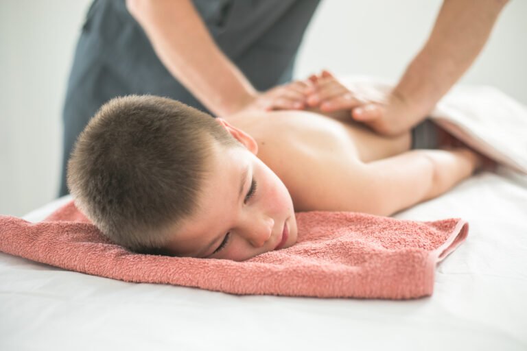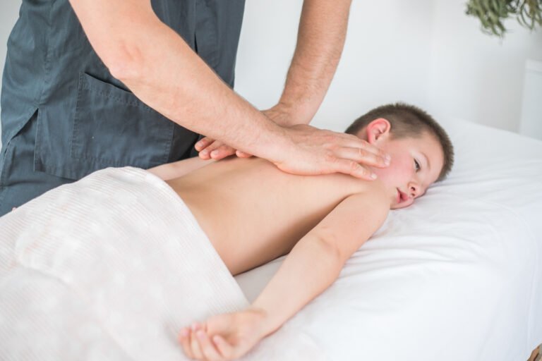 Massagem suave especialmente desenvolvida para crianças, proporcionando relaxamento seguro e momentos de conforto.