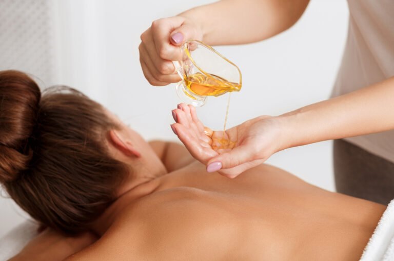 Massagem relaxante com óleos quentes aromáticos aplicada no corpo inteiro, promovendo conforto, bem-estar e revitalização.